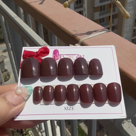 Rich Chocolate Gloss Press-On Nails | Short Soft Square | Luxe Minimal Nails (12 Nails)